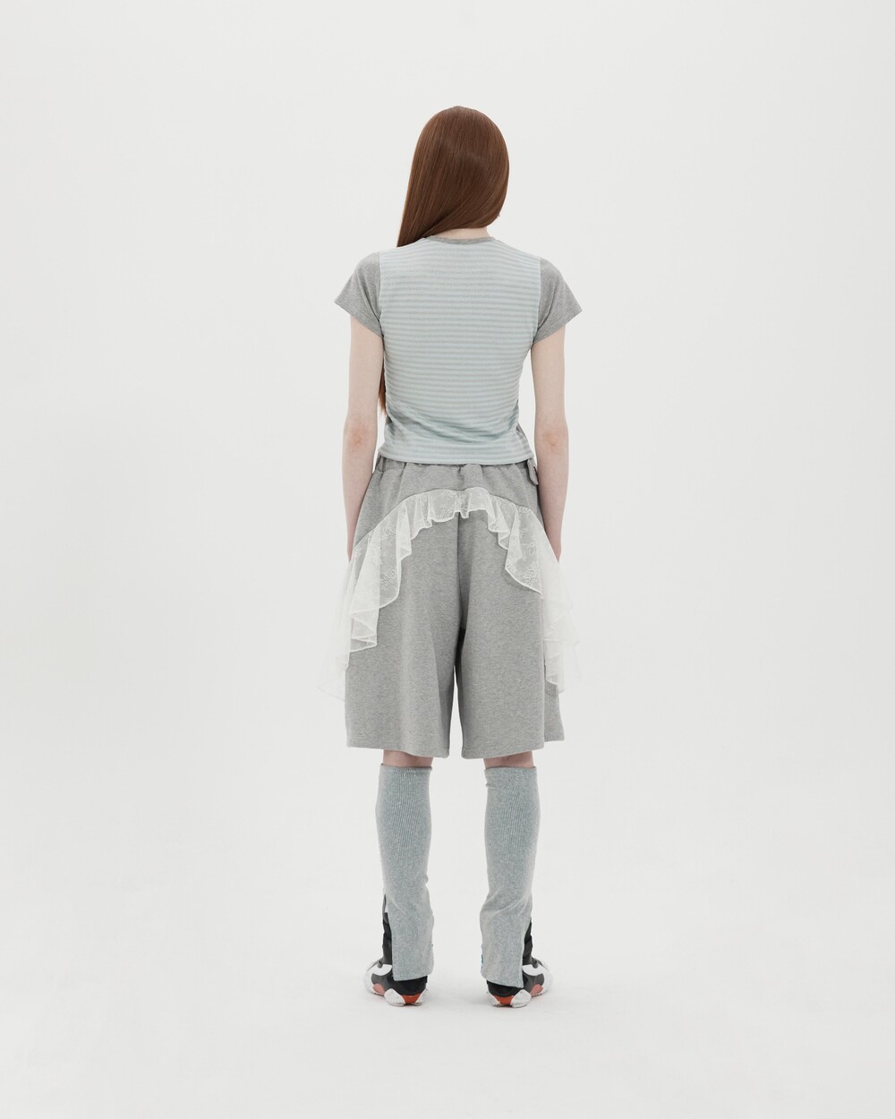 Sheer lace ruffle around shorts