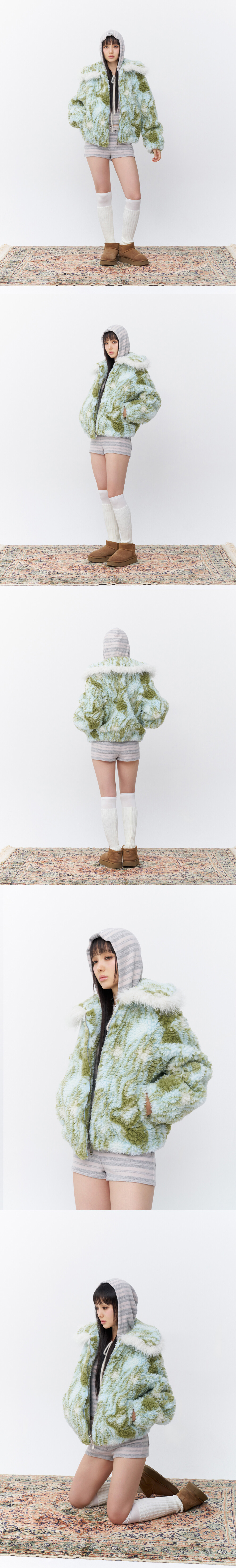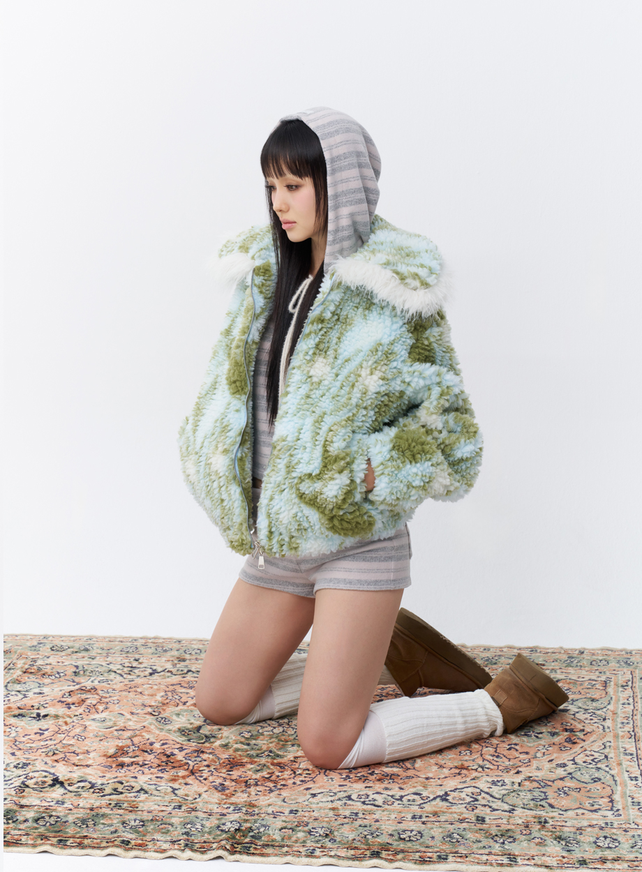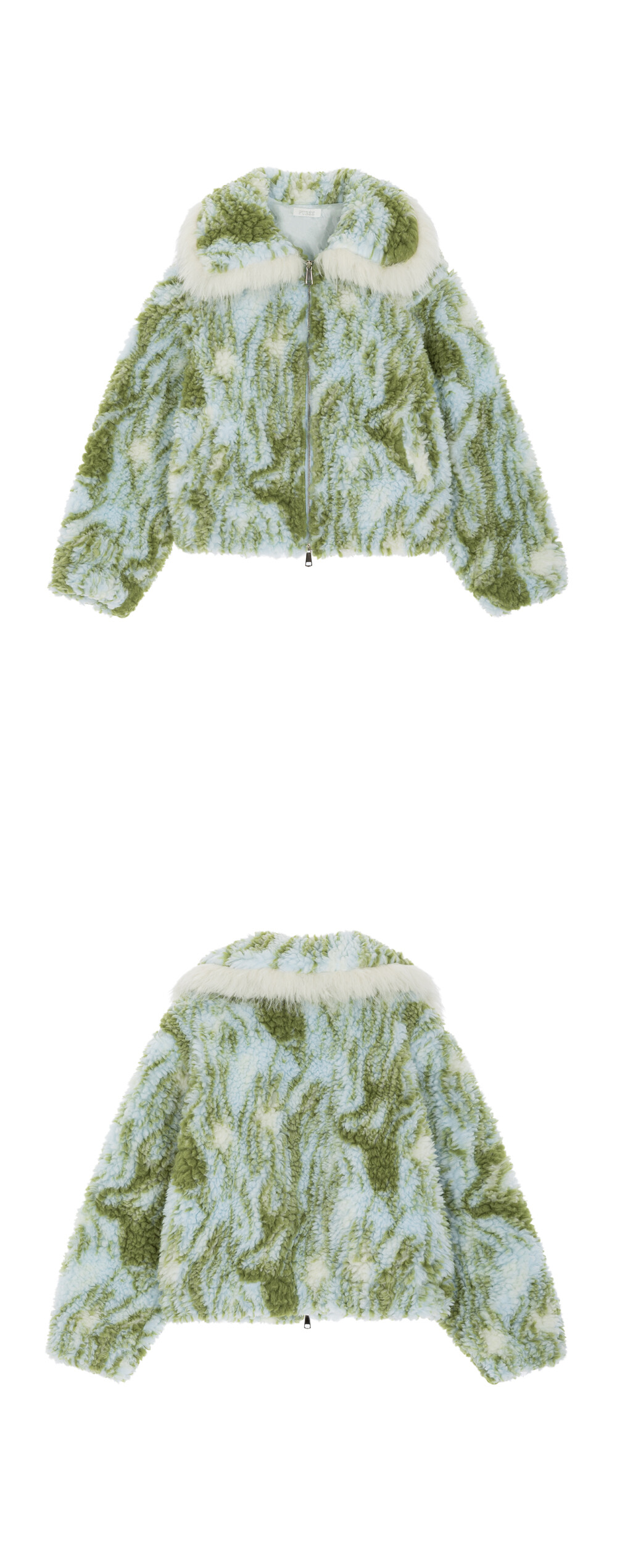 Faux fur trim at wide collar