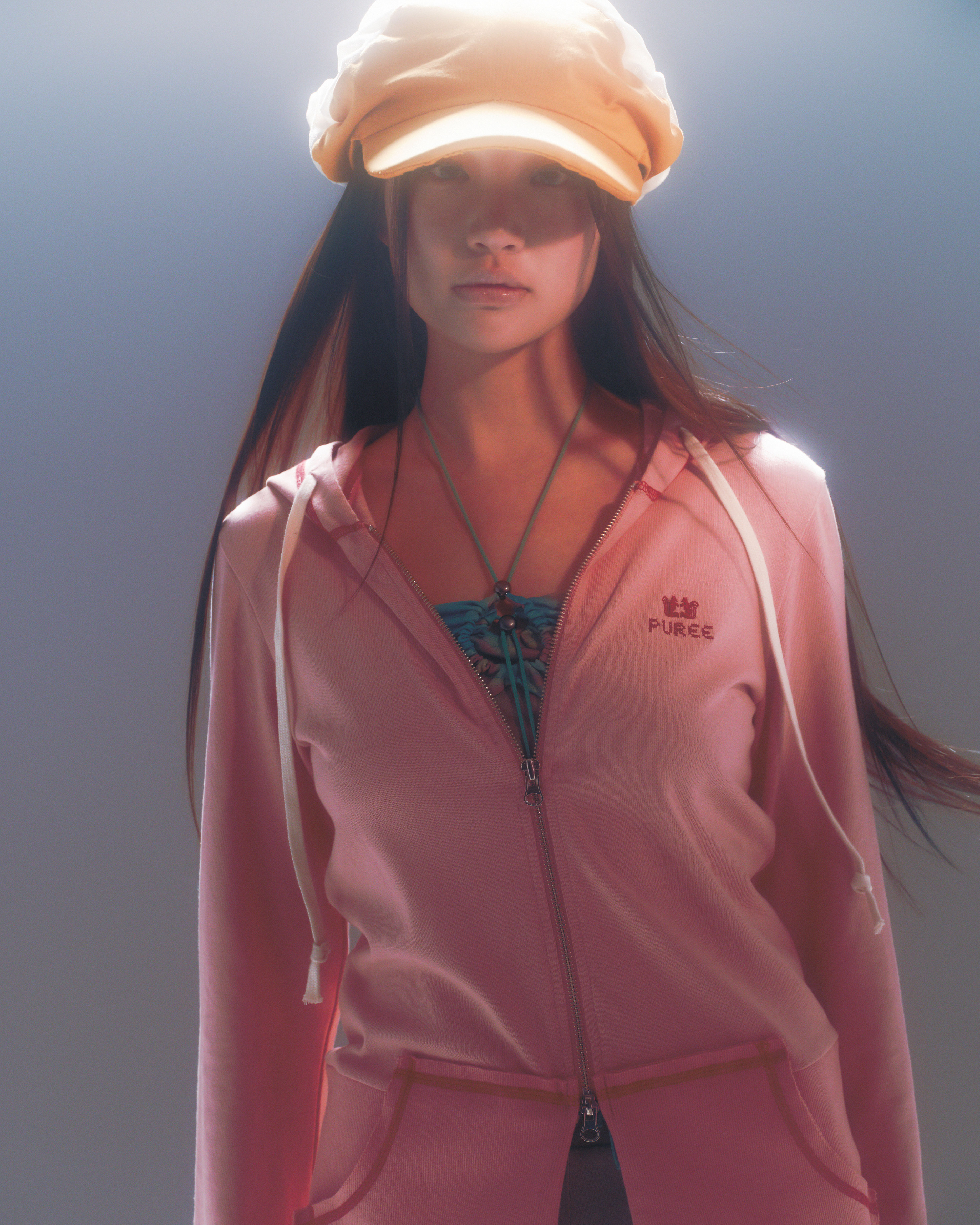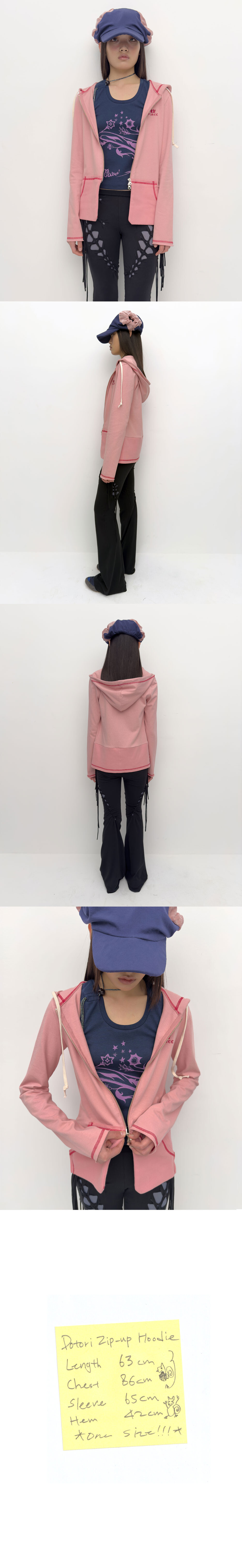 Cotton jersey zip-up hoodie Long sleeves & Standard-fit Kangaroo pocket Drawstring at hood Logo embroidery at front Colored cover stitch detail Two-way zip closure Rib-knit hem One size