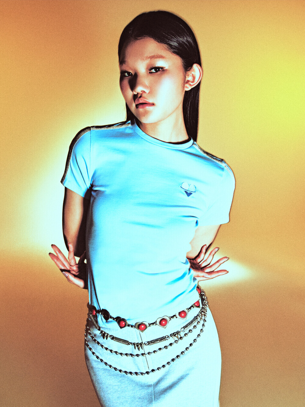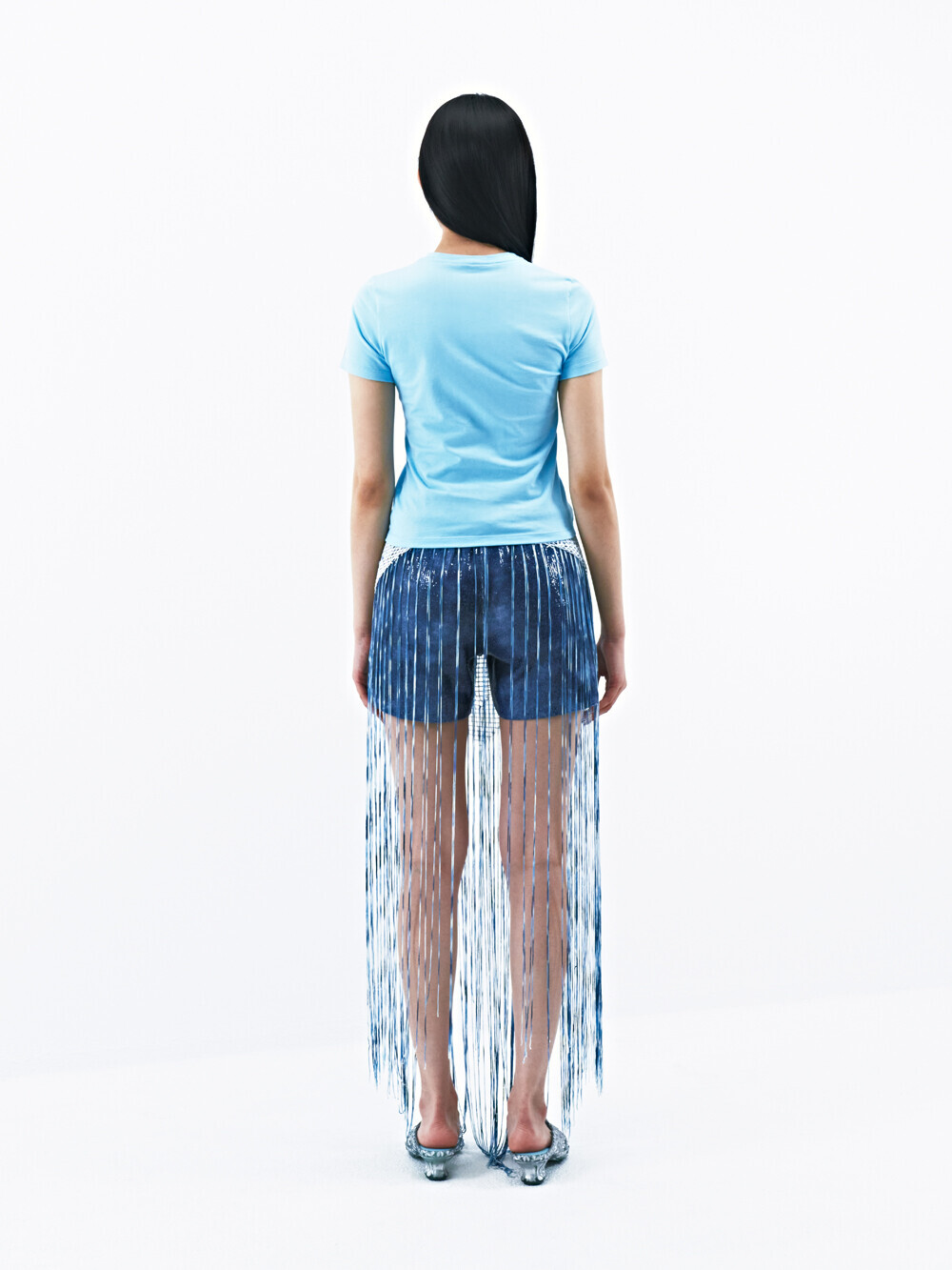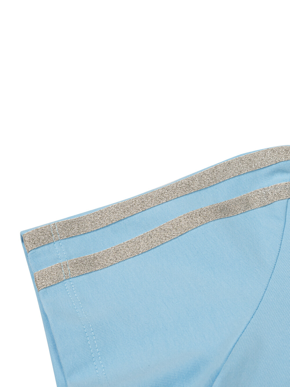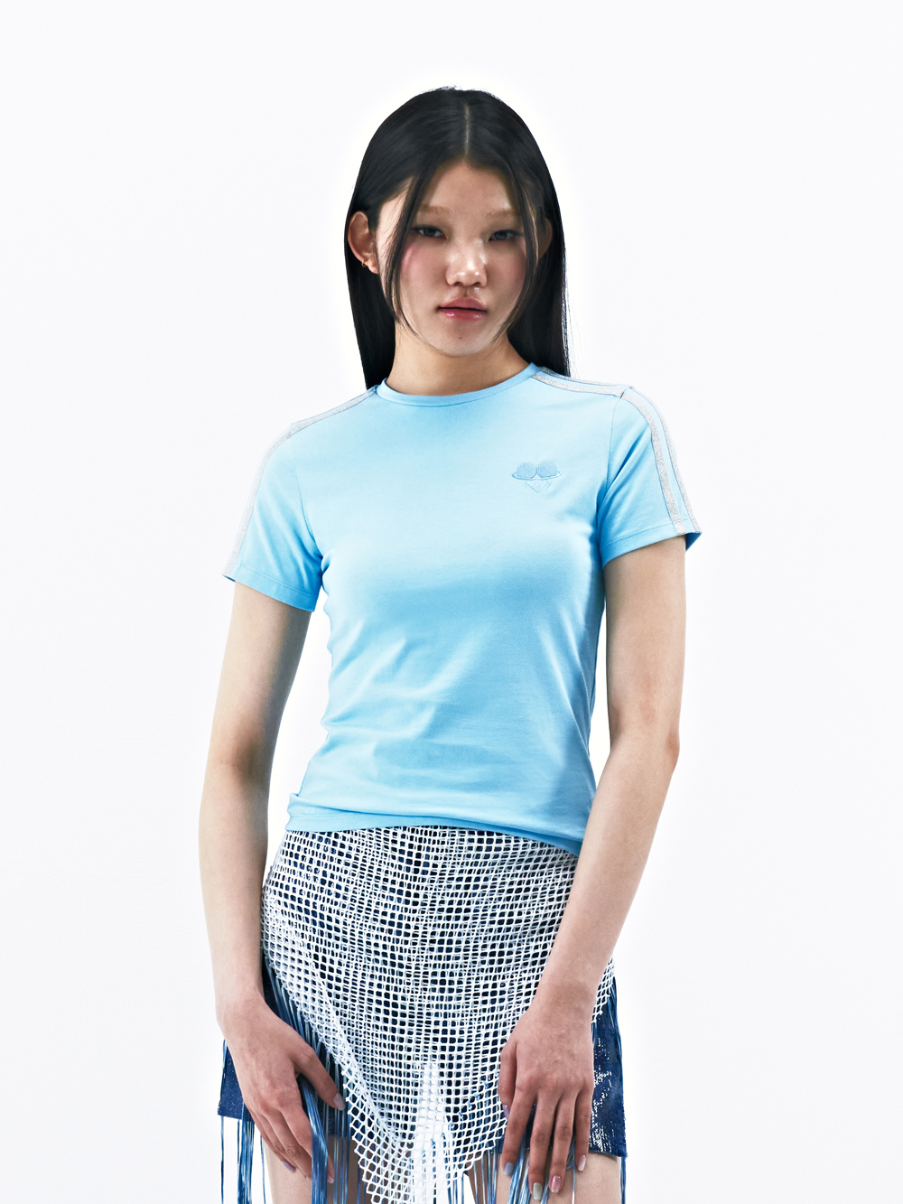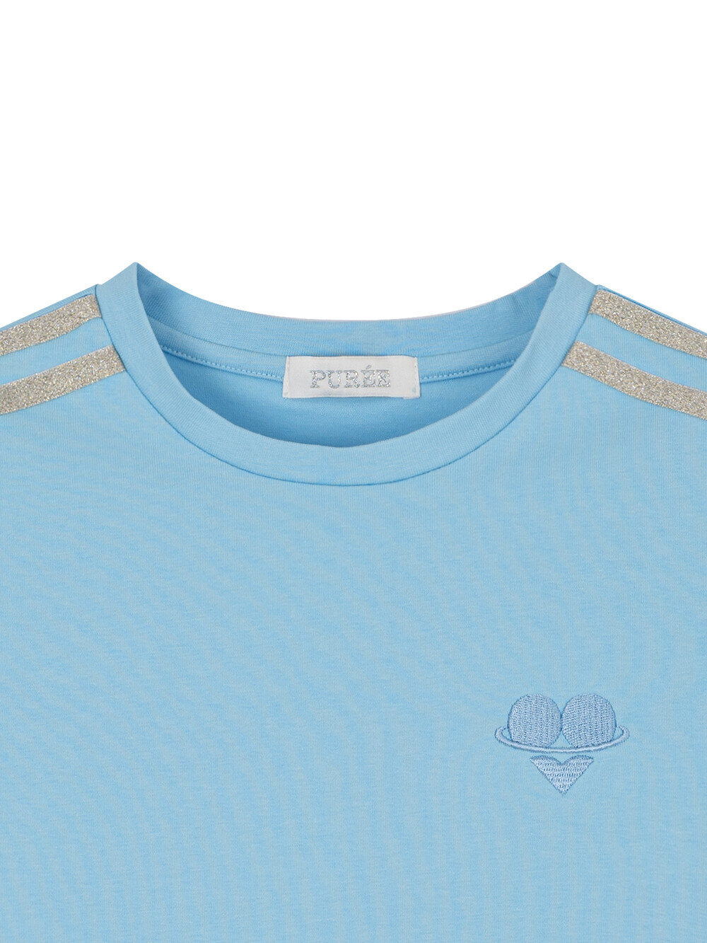Stretch cotton-blend jersey tee Metallic ribbon trims at shoulders & sleeves Original graphic logo embroidered at left chest Semi-crop length Slim fit